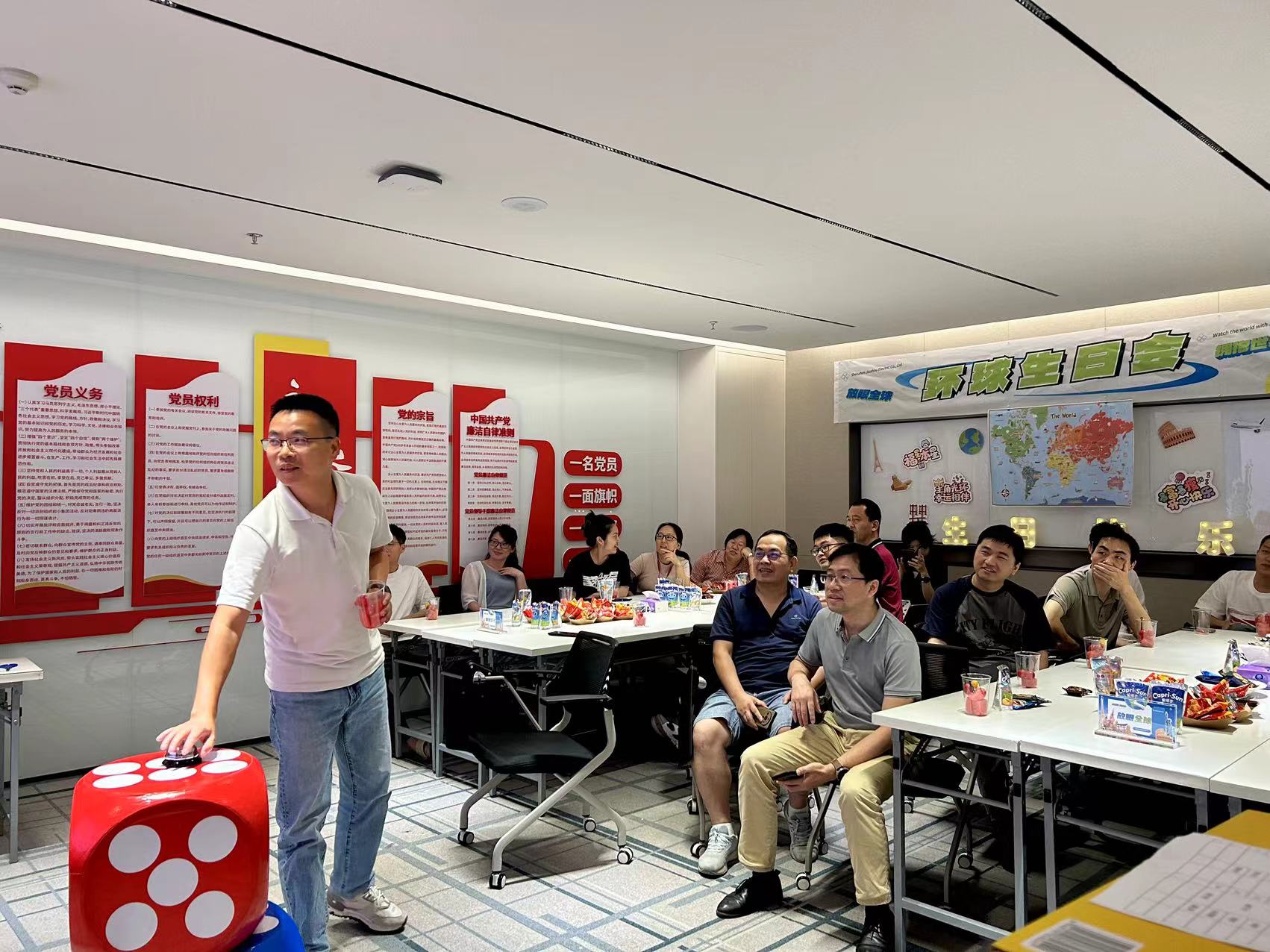 初夏歡歌,共悅生辰, 6月24日,深圳九洲電器組織開展5月、6月員工集體生日會,本次生日會以“環(huán)球”為主題,旨在激勵大家主動擁抱變化、放眼全球、面向世界!