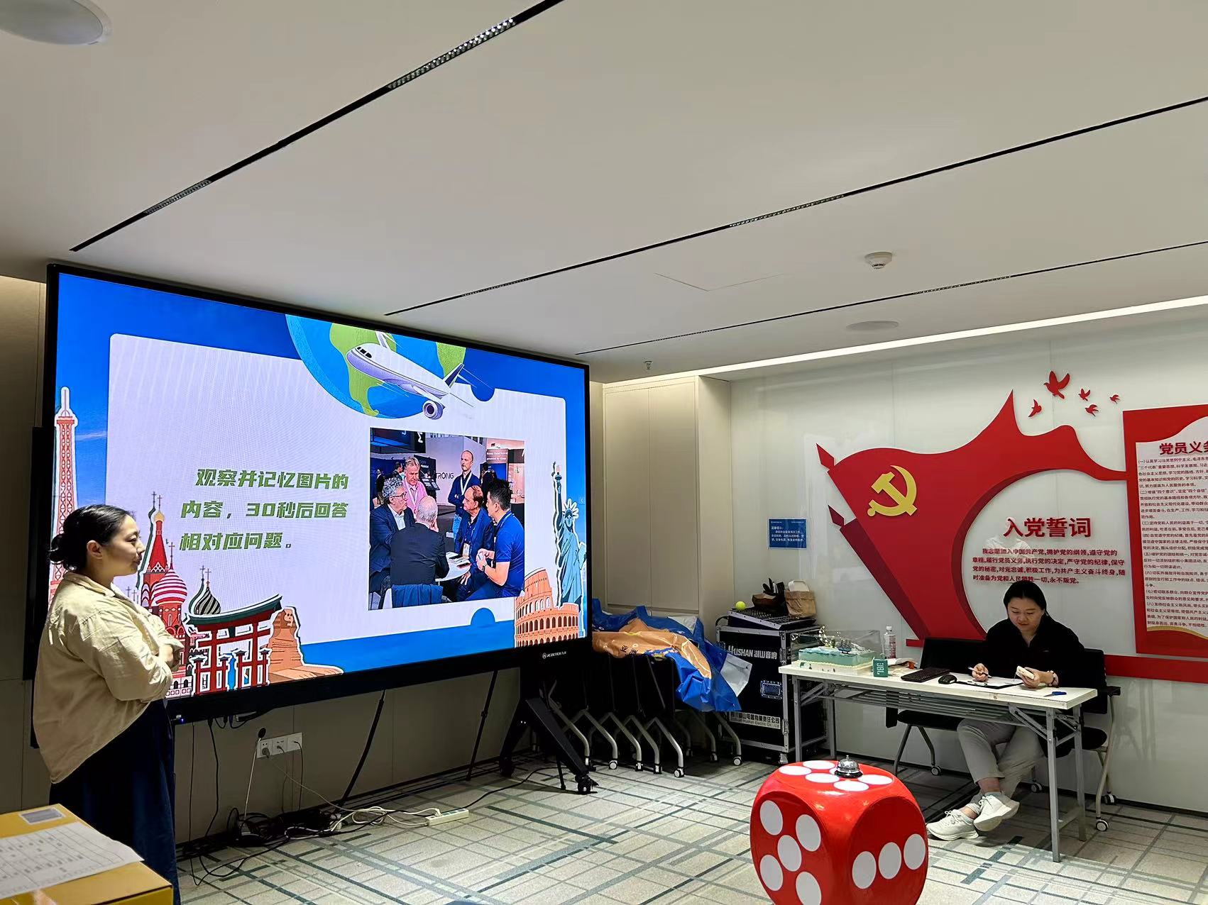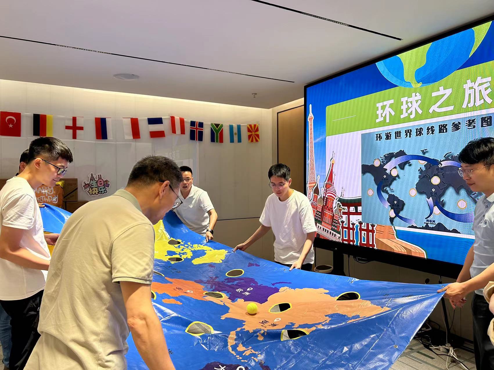 本次生日會的游戲環(huán)節(jié),為了貼近“環(huán)球”的主題,展現公司作為集團國際貿易橋頭堡的風采,壽星們分為“擁抱世界”、“放眼全球”兩個隊伍,開始了兩輪精彩對決!