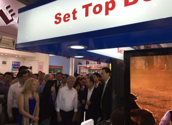 10月17日,展會第三天,烏拉圭總統(tǒng)塔瓦雷·巴斯克斯蒞臨九洲展位。集團公司副總經(jīng)理霞暉介紹了九洲的整體業(yè)務(wù)情況。