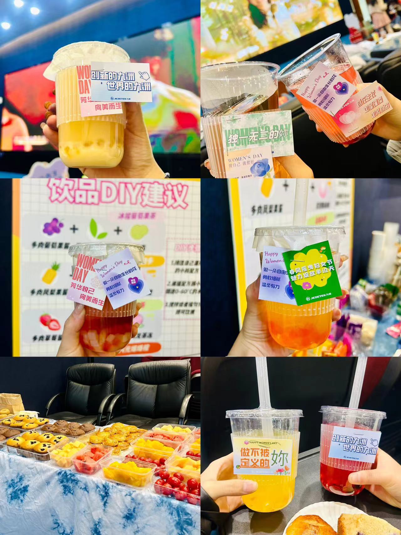 公司為大家準(zhǔn)備了果醬、茶底、小料、水果等幾十種豐富的飲品制作材料,大家對(duì)配料比例、調(diào)味選擇、色彩搭配和外部包裝等方面進(jìn)行創(chuàng)意設(shè)計(jì)來(lái)調(diào)制飲品。不一會(huì)兒一杯杯色彩繽紛、果香四溢、造型各式的專(zhuān)屬飲品制作完成,大家都沉浸在自己發(fā)揮想象、親自動(dòng)手制作飲品的幸福感和滿足感中。