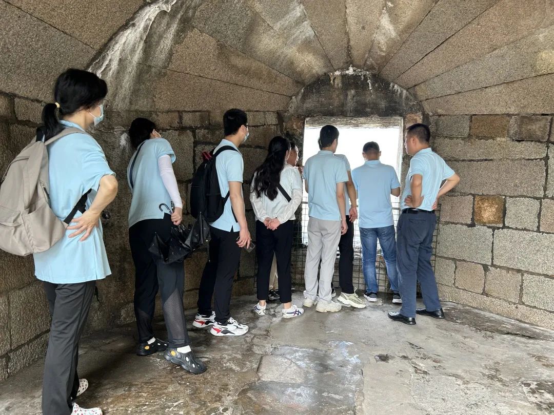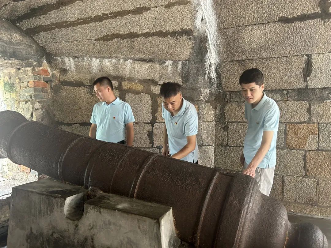 “遙觀碧海出滄灣,滾滾波流過峽關(guān)”,平靜的海面曾經(jīng)炮火紛飛,威遠(yuǎn)炮臺歷盡風(fēng)雨洗禮,黨員們用手輕撫著他,感受著歷史的溫度,是那么蒼涼、悲壯,仿佛愛國英雄關(guān)天培誓死守護炮臺、守護國土的一幕重現(xiàn)。