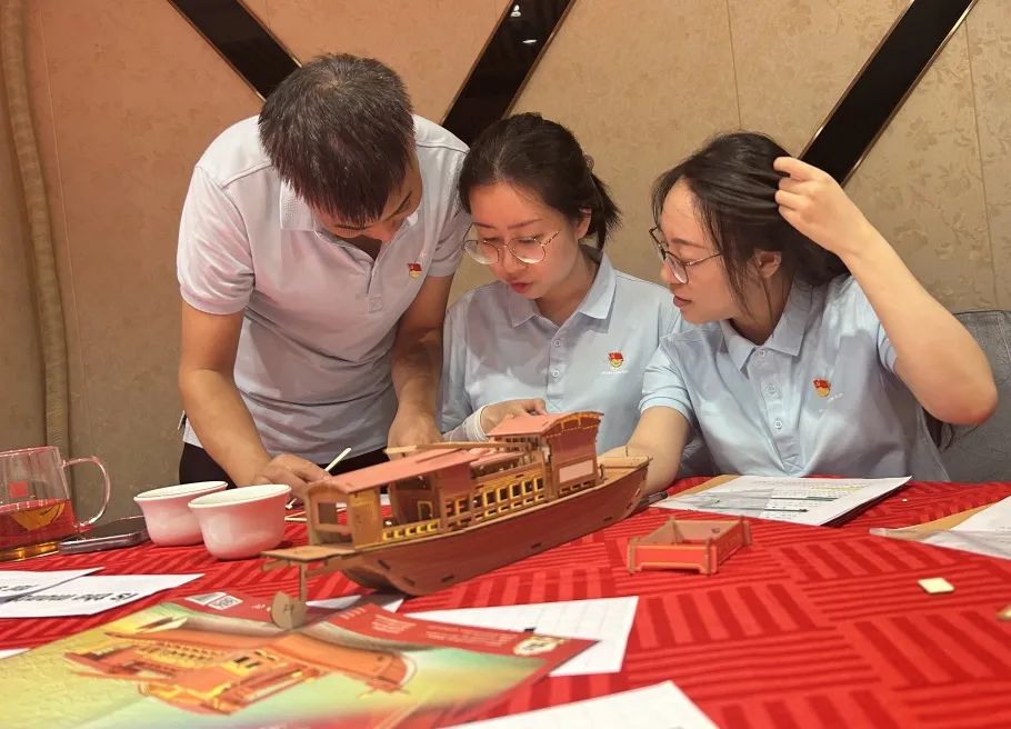 下午,黨員們開始了“重返1921”紅色劇本研讀活動,旨在注入黨史學(xué)習(xí)年輕態(tài),解鎖主題黨日新模式,主要分為“星星之火-前往上海”、“七月流火-望志路106號”、“八月驕陽-嘉興南湖紅船”等內(nèi)容,通過觸發(fā)任務(wù)、全員解密、紅船制作、劇本演繹等沉浸式體驗,帶領(lǐng)黨員們穿越歷史時空,走進崢嶸歲月,感悟黨史,感悟紅色文化,致敬革命先輩,汲取奮進力量。